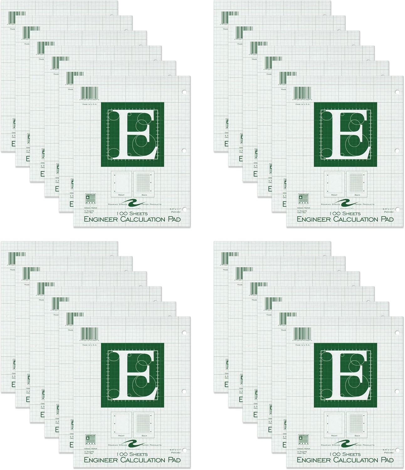 Stay organized, precise, and comfortable while you work with Roaring Spring Engineering Graph Paper Pad—designed for engineers, students, architects, and professionals who rely on accuracy every day. This high-quality engineering pad features a 5x5 grid to the edge of the page printed on the backside of each sheet, helping keep numbers, diagrams, and layouts aligned and easy to read. Whether you’re solving equations, drafting technical drawings, or organizing complex data, the structured grid supports clean, consistent work from start to finish. The green tinted paper is specifically designed to reduce glare and provide a more comfortable writing experience compared to bright white paper. This softer tone helps minimize eye strain during long study sessions, detailed drafting, or extended writing—so you can stay focused and productive. The pad format keeps pages securely bound while allowing for clean, easy tear-out, giving you the flexibility to keep work together or remove pages when needed—without the hassle of loose sheets. With 200 sheets of standard 8.5" x 11" paper, it’s perfect for everyday use at school, in the office, or on the job. Proudly made in the USA by Roaring Spring Paper Products, a trusted manufacturer with over 100 years of experience, this engineering paper pad delivers consistent quality for all your professional and academic needs.